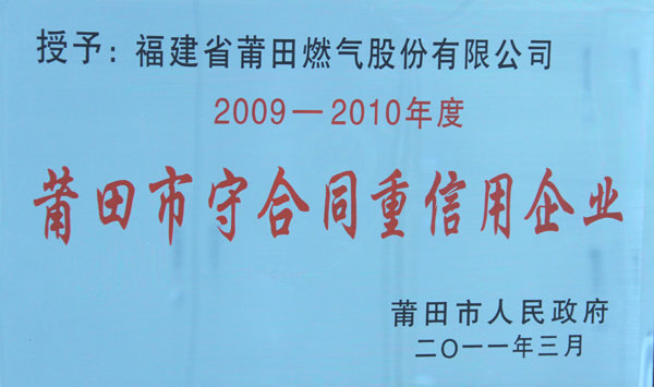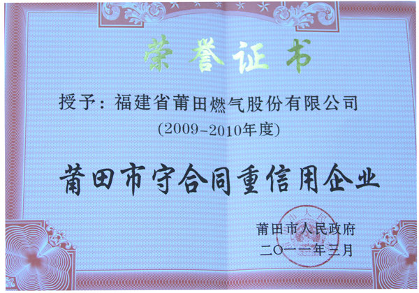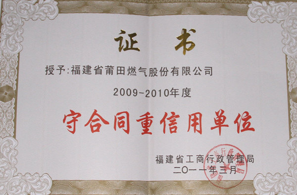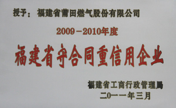2009年10月 榮獲2009-2010年度“福建省守合同重信用企業(yè)”稱號和2009-2010年度“莆田市守合同重信用企業(yè)”稱號。