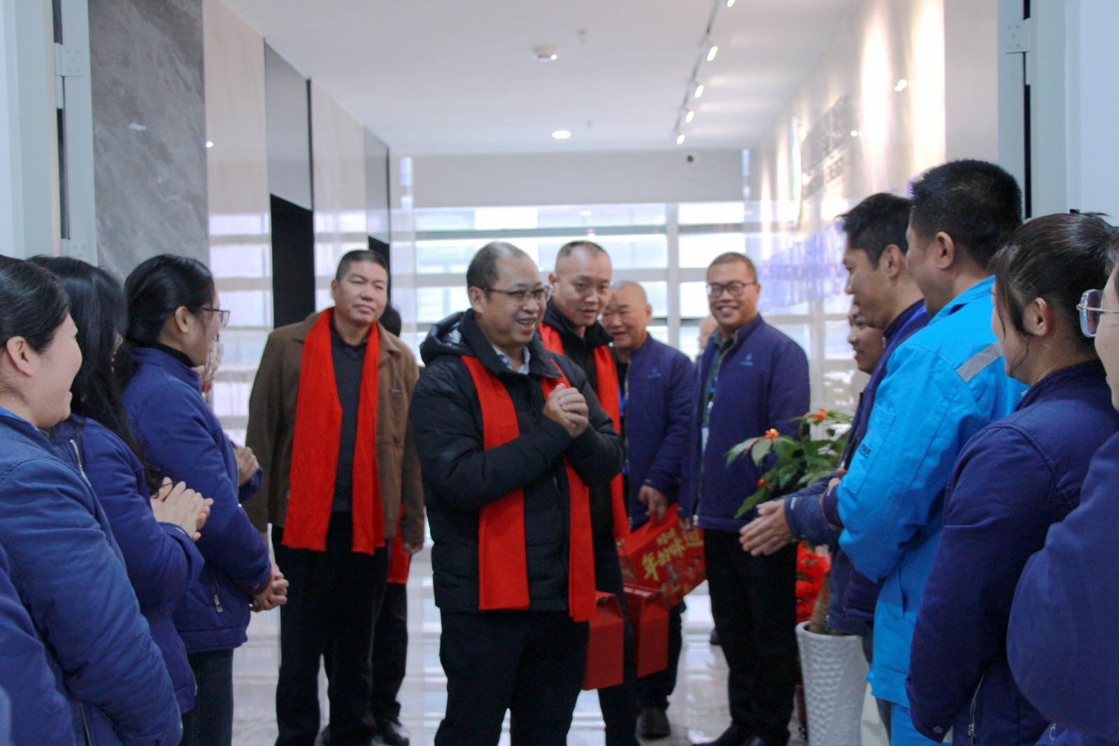 “過年好,給大家拜年了!”“祝大家身體健康,工作順利!”每到一處,高管團(tuán)隊(duì)們便為大家送上新春祝福?!斑^年回家了嗎?”同時(shí),領(lǐng)導(dǎo)們?cè)儐柶鸫蠹疫^年情況和生活狀況,親切地與大家嘮起家常。