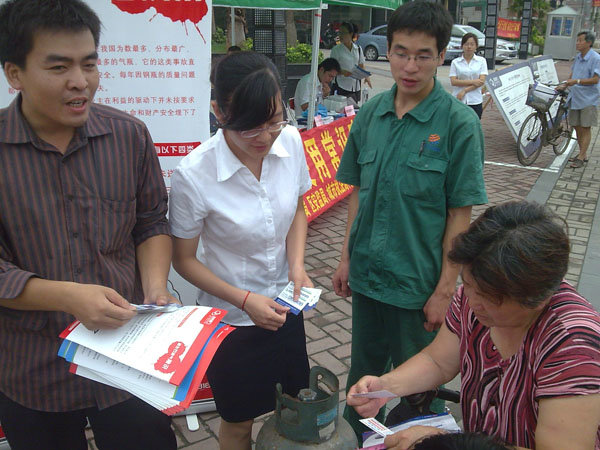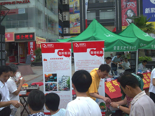 2009年6月25日,莆田燃?xì)狻鞍踩麄髟隆被顒?dòng)走進(jìn)社區(qū),于涵江大地香港城門口開展安全用氣宣傳、普及活動(dòng)。